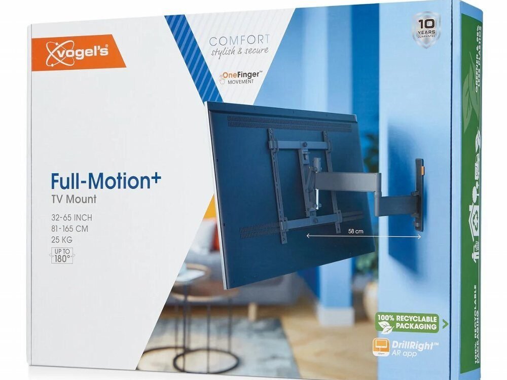 De Vogel’s COMFORT TVM 3445 is een stevige en flexibele draaibare tv-beugel, ontworpen voor televisies van 32 tot 65 inch en een maximaal gewicht van 25 kg. Met een volledig beweegbare arm van 58 cm en een kantel- en draaifunctie biedt deze beugel ultieme kijkvrijheid in elke ruimte.