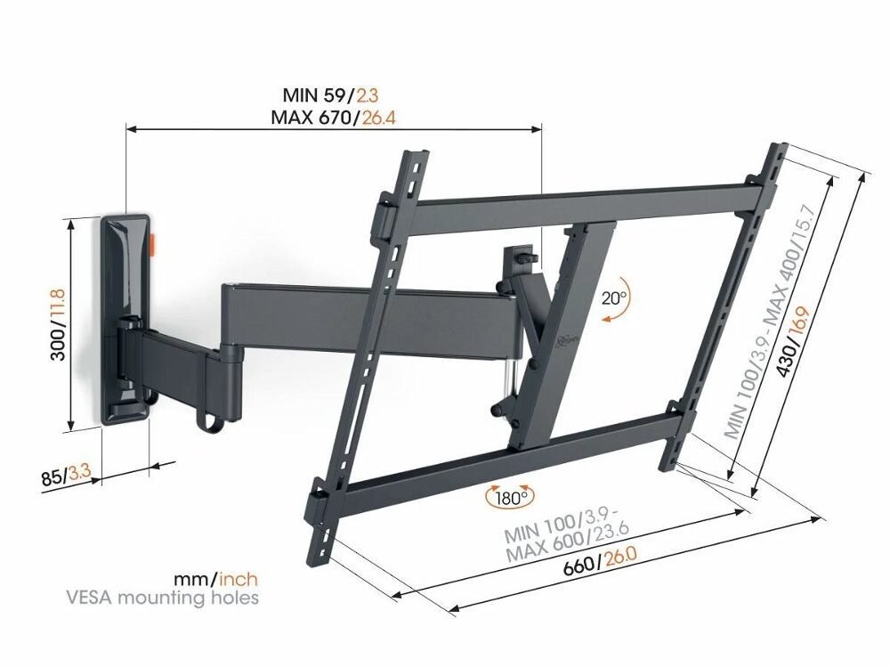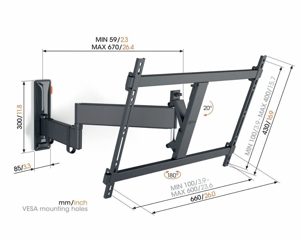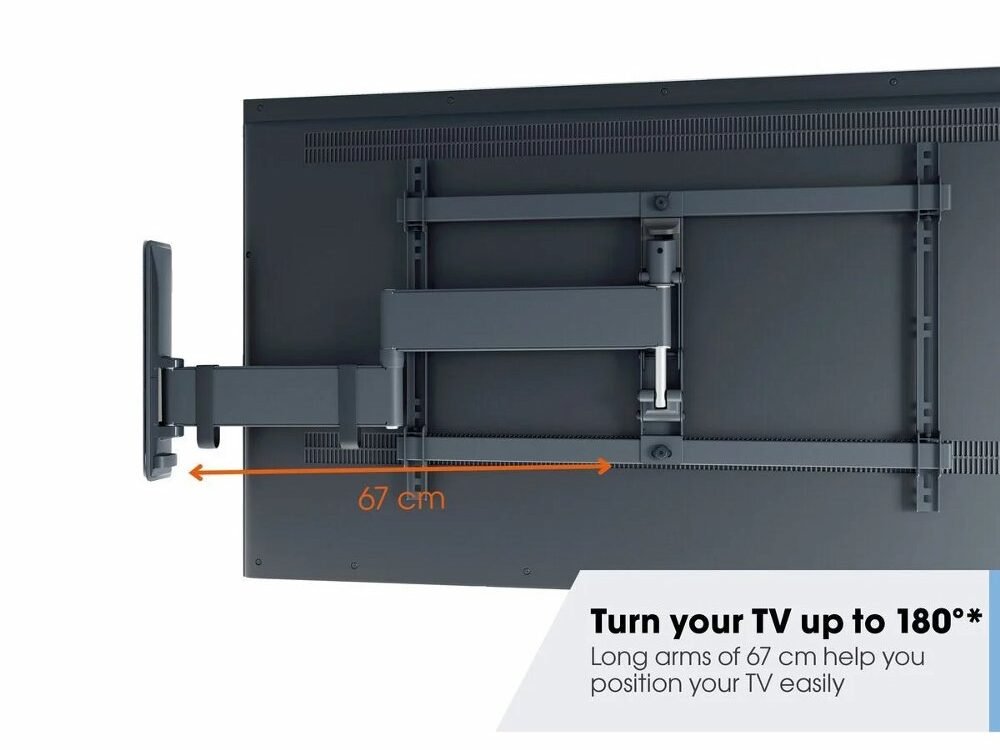 Je tv in de gewenste kijkhoek te positioneren is ongekend makkelijk. De COMFORT Full-Motion+ tv beugel beschikt namelijk over Vogel’s uniek One-Finger™ Movement technologie. Hierdoor draait de beugel zeer licht en soepel. Dankzij de extreem lange armen kan je je tv ver draaien. Wil je weten hoeveel graden precies? Vul op deze pagina jouw tv-type in en zie direct de werkelijke draaihoek van jouw tv.