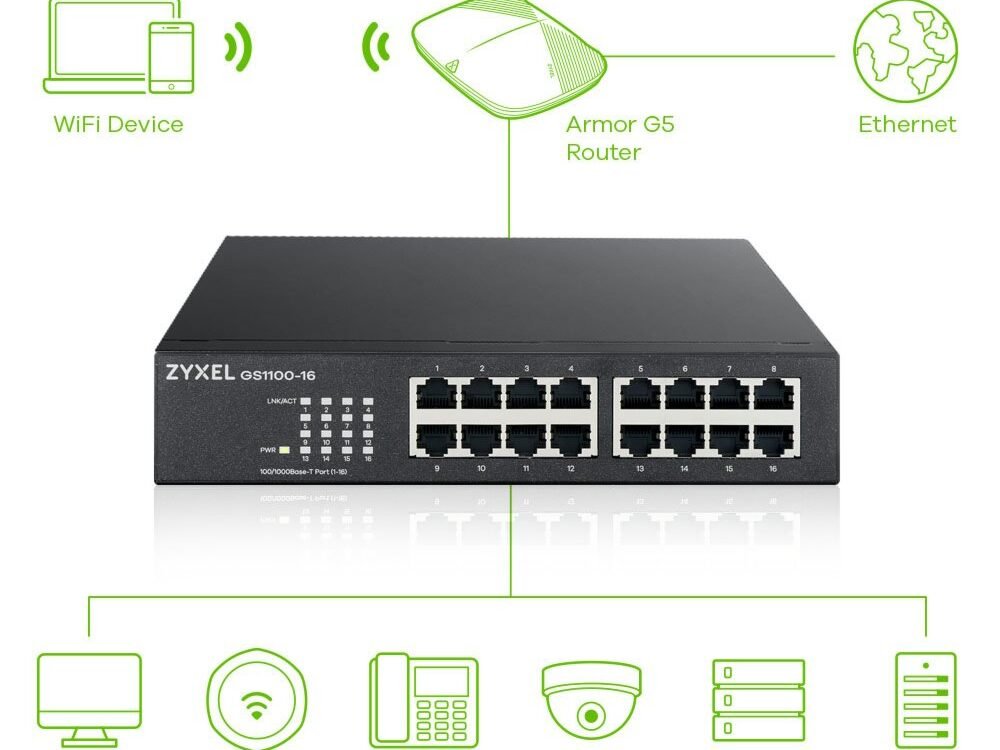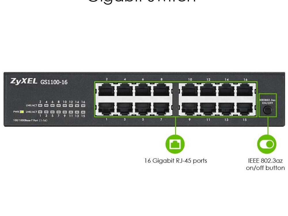 Zyxel 16-poorts Unmanaged Gigabit Switch – Zonder ventilator [GS1100-16]