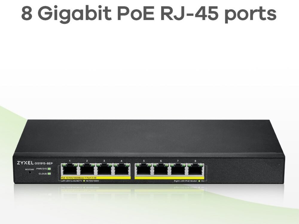 Wees de eerste om “Zyxel GS1915-8EP Managed L2 Gigabit PoE+ Switch | 8 Poorten | NebulaFlex | Zwart” te beoordelen Reactie annuleren